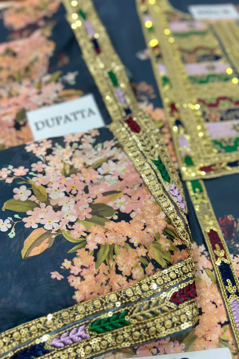 ▪️Heavy Embroidered Silk Dupatta with 04 Sides Cut work Border attached
